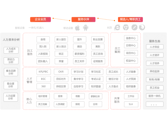 ☉員工服務(wù):應(yīng)聘、入職、轉(zhuǎn)正、晉升、調(diào)動、離職、薪酬、關(guān)懷、學習、發(fā)展、證明、咨詢