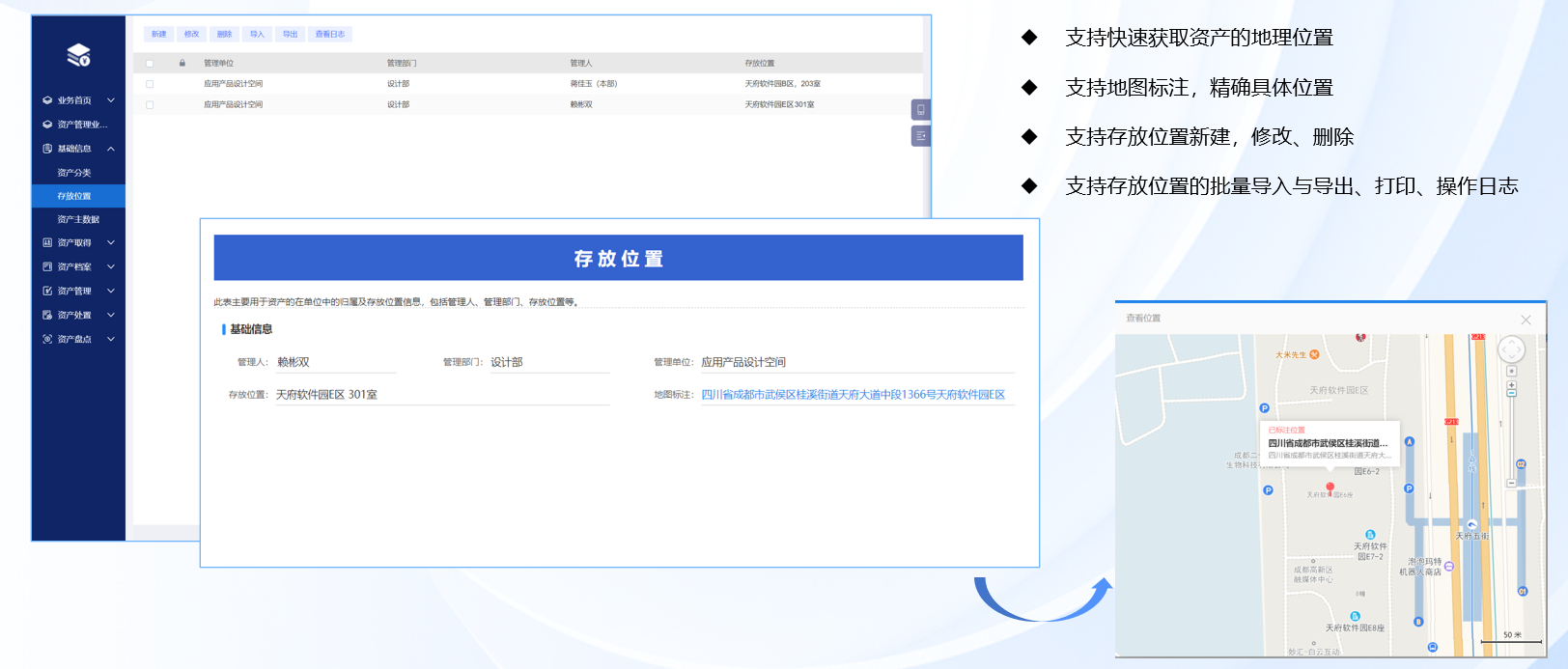 資產(chǎn)存放位置,地圖標(biāo)注、快速定位
