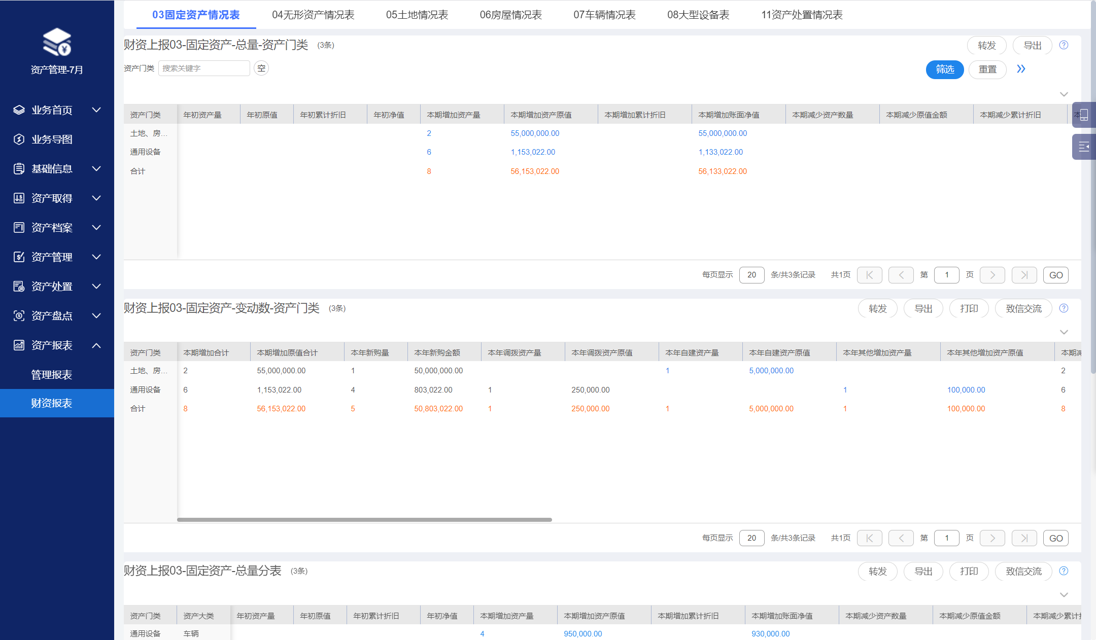 資產(chǎn)管理報(bào)表,以圖形化、數(shù)字化方式展現(xiàn)單位當(dāng)前資產(chǎn)情況。按照財(cái)政部制定的《2017年度行政事業(yè)單位國有資產(chǎn)報(bào)告》格式及編制說明,設(shè)置財(cái)資報(bào)表,支持?jǐn)?shù)據(jù)一鍵導(dǎo)出。